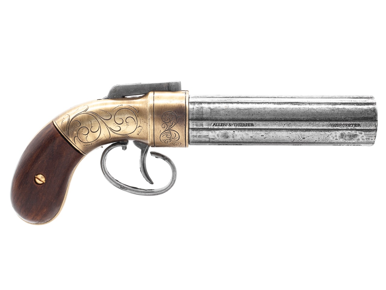 Merkmale und Funktionen des Allen & Thurber Pepperbox Deko Bündelrevolver