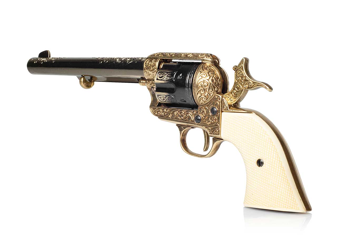 - Edle Denix Replika eines zivilen Colt SAA 1873 Peacemaker mit Cuno Helfricht Werksgravur und Eagle Grip nach Originalvorlage.