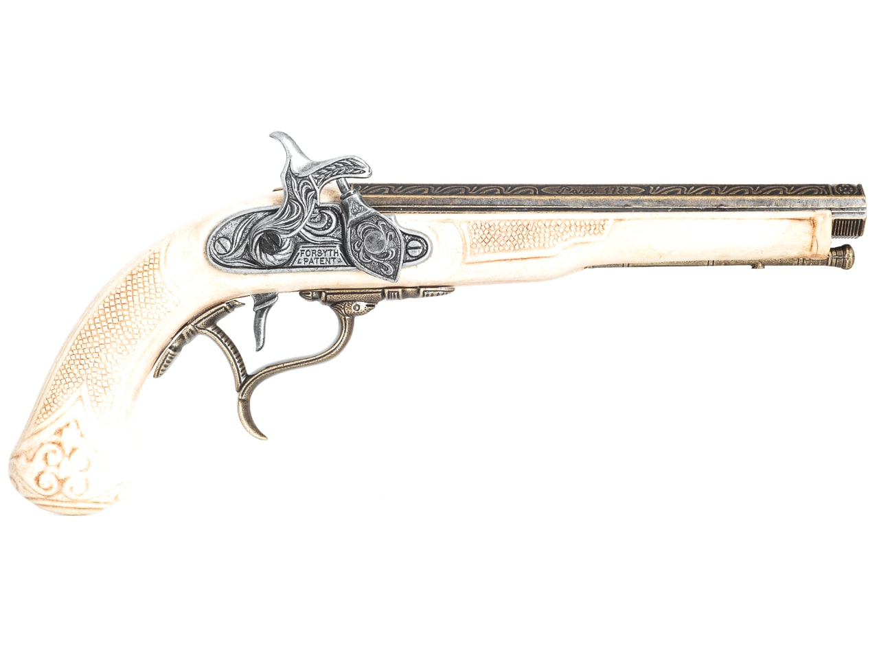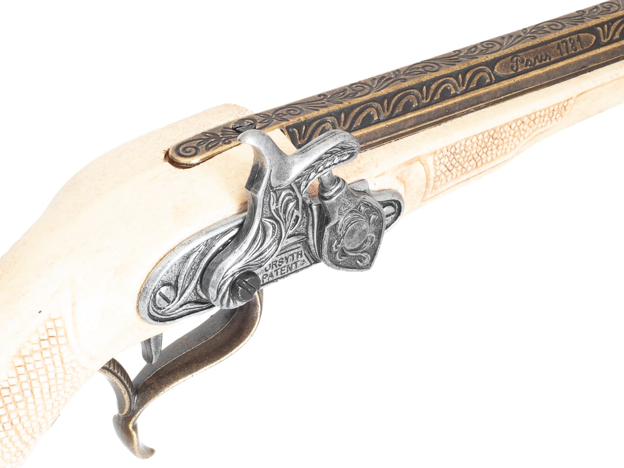 Vorderladerpistolen dieses Typs verfügen über einen für die damalige Zeit hochmodernen Mechanismus in Form eines von Forsyth entwickelten und patentierten Perkussionsschlosses. Sie wurden um 1807 vom Londoner Büchsenmacher Hadley hergestellt und verkauft.